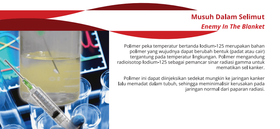 Polimer peka temperatur bertanda Iodium-125 merupakan bahan polimer yang wujudnya dapat berubah bentuk (padat atau cair) tergantung pada temperatur lingkungan. Polimer yang mengandung radioisotop ...