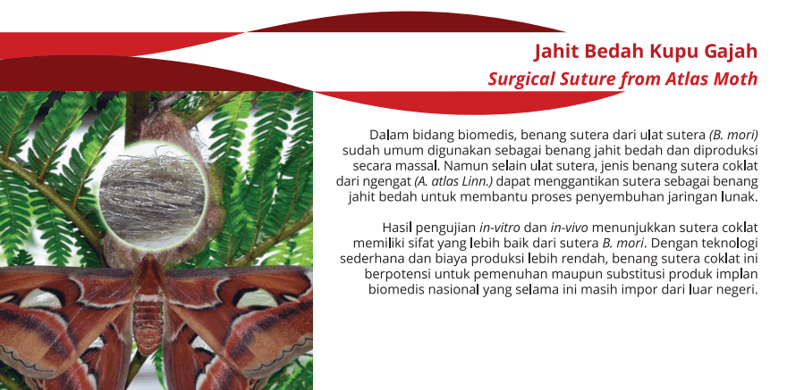 Dalam bidang biomedis, benang sutera dari ulat sutera (B. mori) sudah umum digunakan sebagai benang jahit bedah dan diproduksi secara massal. Namun selain ulat sutera, jenis benang sutera coklat ...