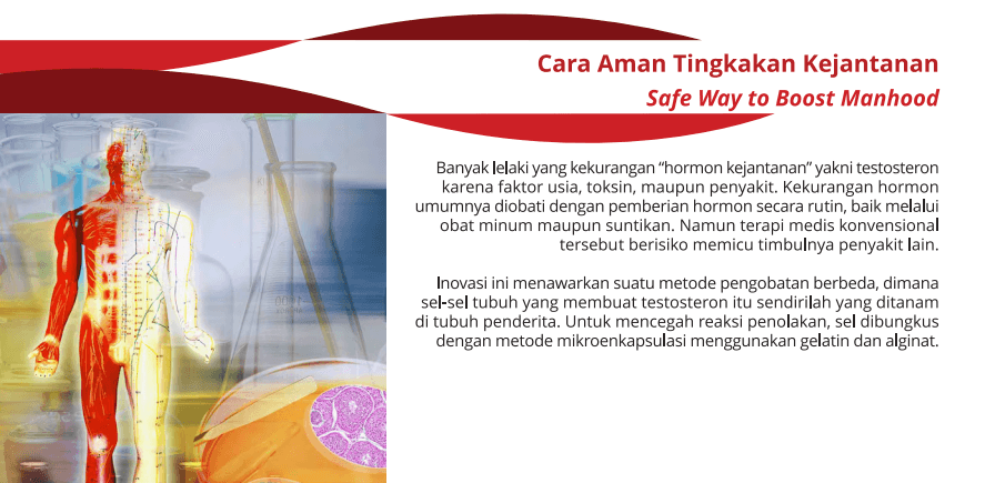 Banyak lelaki yang kekurangan hormon kejantanan yakni testosteron karena faktor usia, toksin, maupun penyakit. Inovasi ini menawarkan suatu metode pengobatan berbeda, dimana sel-sel tubuh yang ...