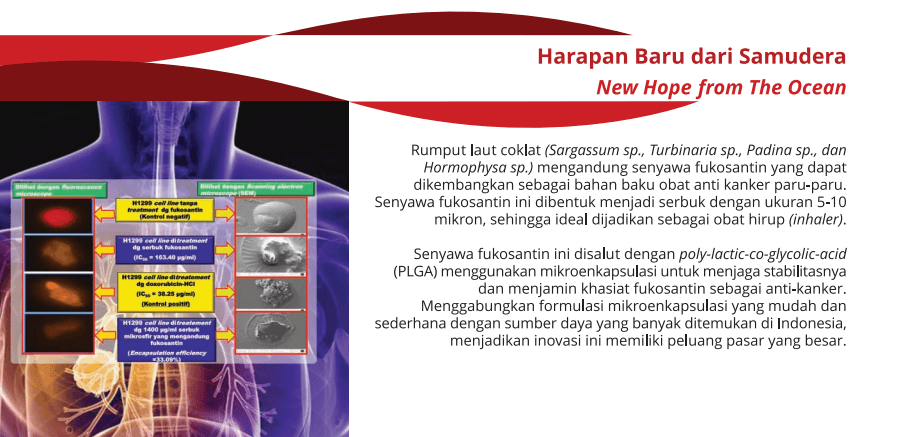 Rumput laut coklat (Sargassum sp., Turbinaria sp., Padina sp., dan Hormophysa sp.) mengandung senyawa fukosantin yang dapat dikembangkan sebagai bahan baku obat anti kanker paru-paru. Senyawa ...