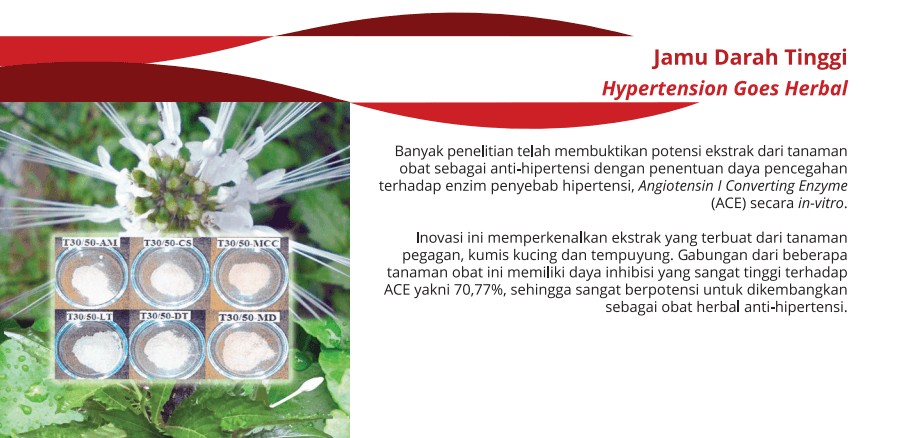 Banyak penelitian telah membuktikan potensi ekstrak dari tanaman obat sebagai anti-hipertensi dengan penentuan daya pencegahan terhadap enzim penyebab hipertensi, Angiotensin I Converting ...