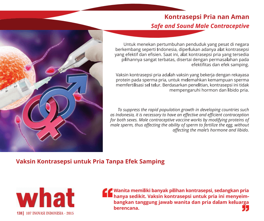Untuk menekan pertumbuhan penduduk yang pesat di negara berkembang seperti Indonesia, diperlukan adanya alat kontrasepsi yang efektif dan efisien. Vaksin kontrasepsi pria adalah vaksin yang bekerja dengan rekayasa protein pada sperma pria, untuk melemahkan kemampuan sperma memfertilisasi sel telur.
