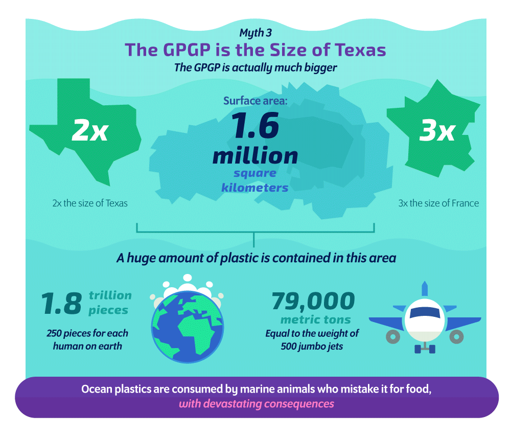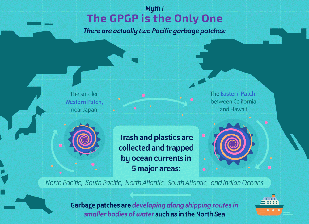 GPGP adalah tempat terjadinya akumulasi limbah plastik di laut terbesar di dunia. Selama ini, ada anggapan bahwa di dunia ini hanya ada 1 GPGP yang terletak di antara Hawaii dan California. Ternyata anggapan tersebut keliru, sebenarnya ada 2 GPGP; yang terletak di antara Hawaii dan California adalah GPGP yang besar, satu lagi yang lebih kecil terletak di dekat Jepang. Limbah plastik dan sampah lainnya terkumpul dan terperangkap oleh arus laut di 5 area: Pasifik Utara, Pasifik Selatan, Atlantik Utara, Atlantik Selatan, dan Samudera Hindia. Garbage Patch baru sedang terbentuk sepanjang rute pelayaran di area perairan yang lebih kecil seperti di Laut Utara.