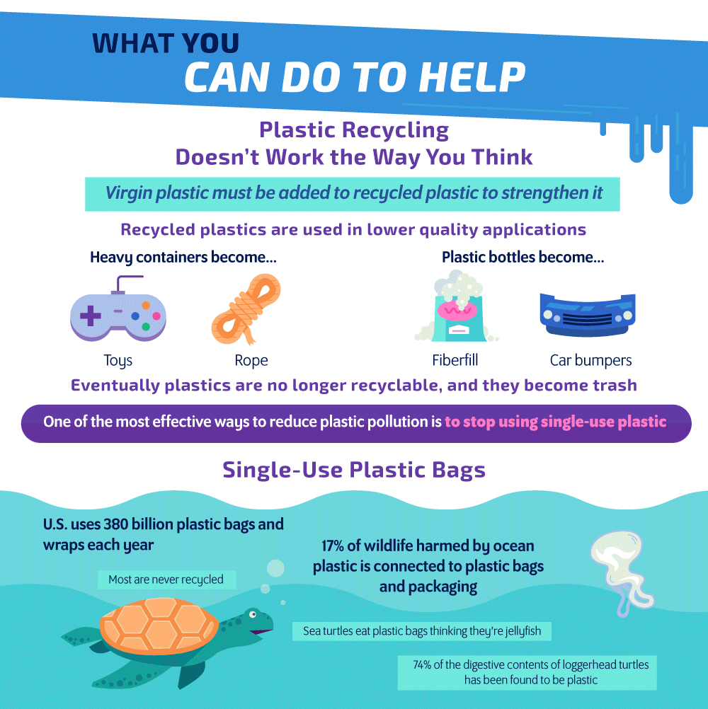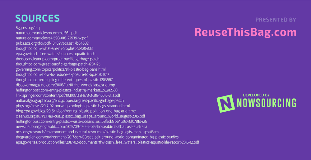 Jika sebuah gambar mampu mengungkapkan seribu kata, maka bayangkan apa yang bisa dilakukan oleh gambar dan kata-kata secara bersamaan. Paparan infografis berikut ini adalah salah satu contohnya. Dibuat oleh ReuseThisBag.com, gambar yang menarik dengan tulisan yang informatif ini dibuat dengan tujuan untuk memberikan pengetahuan tentang limbah plastik di lautan yang sudah menjadi masalah serius untuk generasi kita saat ini dan generasi masa depan.