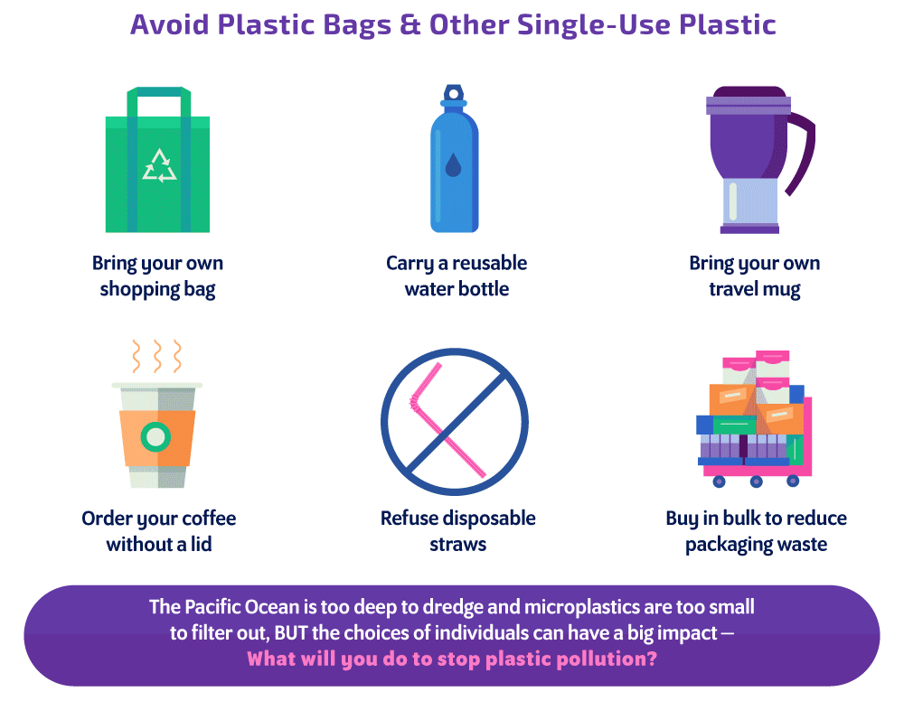 Lalu, apa yang dapat Anda lakukan untuk membantu memecahkan masalah sampah laut global? Kurangi membeli barang yang dibungkus dengan plastik, gunakan kembali kemasan plastik yang Anda miliki, dan daur ulang apa yang tidak dapat Anda gunakan kembali. Gunakan tas kain dan botol air yang dapat digunakan kembali sebagai pengganti botol sekali pakai. Carilah kemasan "sekali pakai" yang benar-benar dapat dibuang ― misalnya yang terbuat dari bioplastik yang mudah terurai dan tidak melepaskan racun. Dan jangan lupa sebarkan berita tentang masalah sampah plastik, sehingga orang lain termotivasi untuk mengikuti apa yang Anda lakukan!