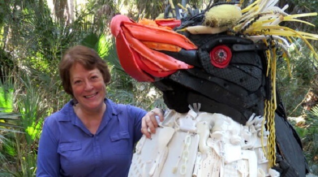 Pozzi mencoba menggambarkan keragaman sampah laut dalam patung-patungnya, sembari menyinggung masalah laut lainnya. Dengan bantuan masyarakat, Pozzi telah membuat lebih dari 65 patung sejak 2010. Ada patung tulang rusuk paus dari wadah bahan pemutih, ubur-ubur dari botol air minum, dan terumbu karang yang memutih dari Styrofoam. Bahkan ada bintang laut yang terbuat dari botol kaca yang bisa dipukul-pukul dengan palu untuk bermain musik.