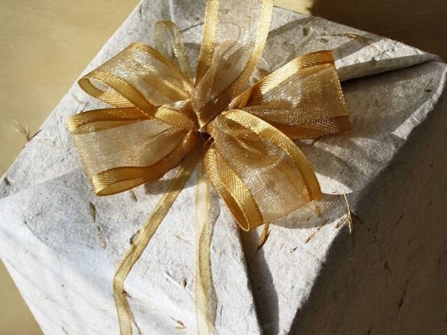 5. Jika Anda tetap ingin memakai kemasan yang bukan barang bekas, coba cari pembungkus kado yang terbuat dari kertas daur ulang seperti pada gambar ini